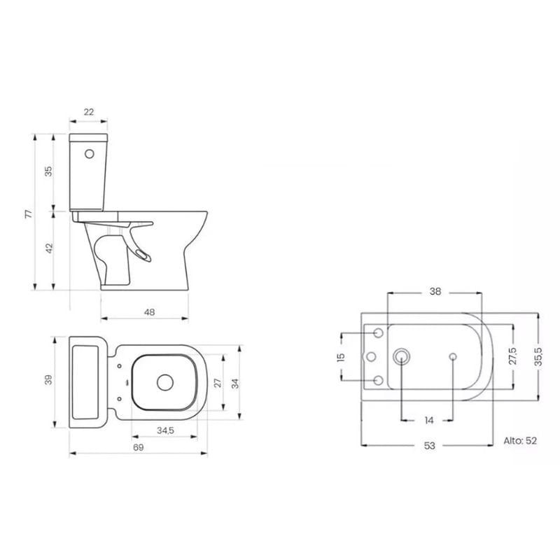 Diseño compacto: Sus dimensiones de 52 cm de alto, 53 cm de largo y 35.5 cm de ancho lo hacen ideal para baños de cualquier tamaño.
